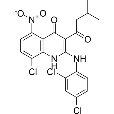 ClC1C=CC(=C2C(C(=C(NC3C=CC(=CC=3Cl)Cl)NC2=1)C(CC(C)C)=O)=O)[N+](=O)[O-]