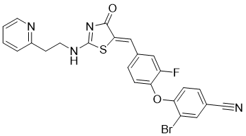 3-bromo-4-[2-fluoro-4-[(Z)-[4-oxo-2-(2-pyridin-2-ylethylimino)-1,3-thiazolidin-5-ylidene]methyl]phenoxy]benzonitrile