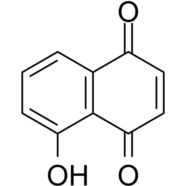 胡桃醌是一种羟基-1,4-萘醌,即1,4-萘醌中5位氢原子被羟基取代的化合物。它是一种植物来源的1,4-萘醌,已被证实具有抗菌和抗肿瘤活性。胡桃醌可用作除草剂、活性氧发生器和抗衰老剂。