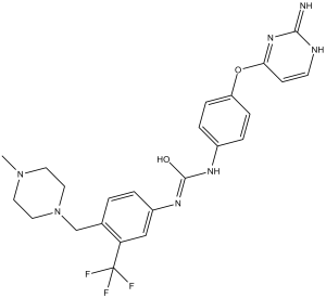 InChI=1S/C24H26F3N7O2/c1-33-10-12-34(13-11-33)15-16-2-3-18(14-20(16)24(25,26)27)31-23(35)30-17-4-6-19(7-5-17)36-21-8-9-29-22(28)32-21/h2-9,14H,10-13,15H2,1H3,(H2,28,29,32)(H2,30,31,35)