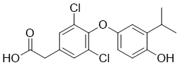 ClC1C=C(CC(=O)O)C=C(C=1OC1=CC=C(C(=C1)C(C)C)O)Cl