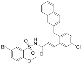 COC1=C(C=C(C=C1)Br)S(=O)(=O)NC(=O)/C=C/C2=C(C=CC(=C2)Cl)CC3=CC4=CC=CC=C4C=C3