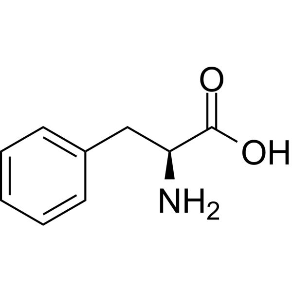 L-苯丙氨酸生物合成中的重要参与者包括 DAHP 合酶 (DS) 和分支酸变位酶/苯前酸脱水酶 (CM/PD)。 CM/PD 易受 L-苯丙氨酸的反馈抑制影响,而 DS 易受酪氨酸的反馈抑制影响 [1]。 L-苯丙氨酸的 IC50 为 980 μM,可以降低培养神经元中非 NMDA 受体的活性 [5]。