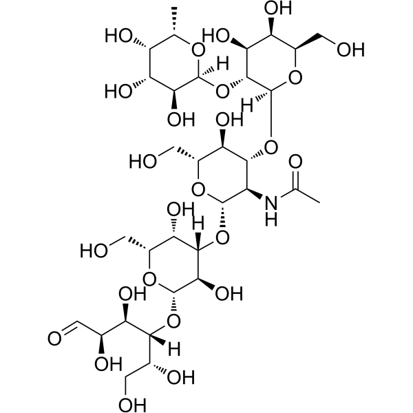 C[C@H]1[C@H]([C@H]([C@@H]([C@@H](O1)O[C@@H]2[C@H]([C@H]([C@H](O[C@H]2O[C@@H]3[C@H]([C@@H](O[C@@H]([C@H]3O)CO)O[C@H]4[C@H]([C@H](O[C@H]([C@@H]4O)O[C@H]([C@@H](CO)O)[C@@H]([C@H](C=O)O)O)CO)O)NC(=O)C)CO)O)O)O)O)O