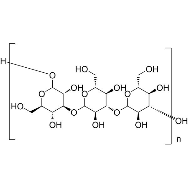 层状多糖(100-800 µg/mL;24 小时)不会对人黑色素瘤细胞 SK-MEL-28 或正常表皮细胞 JB6 Cl41 产生任何细胞毒性。处理24小时后,浓度高达800μg/mL时,活细胞数的抑制百分比低于15%[1]。处理 24 和 48 小时后,昆布多糖(200 µg/mL;24-72 小时)不会降低 SK-MEL-28 细胞的发育;然而,治疗72小时后,细胞增殖减少了36%[1]。 c-Raf (Ser259)、ERK1/2 (Tyr202/Tyr204) 和 MEK1/2 (Ser 221) 激酶的磷酸化以及检测的总激酶蛋白表达水平不受低量昆布多糖的影响 (25– 50 µg/mL;24 小时)。另一方面,在 50 µg/mL 时,p-MEK 和 p-ERK1/2 会降低[1]。