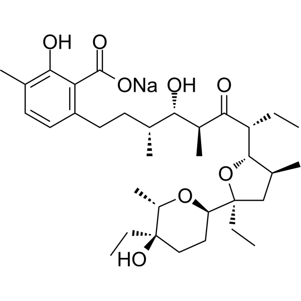 O=C([O-])C1=C(CC[C@@H](C)[C@H](O)[C@H](C)C([C@@H]([C@H]2O[C@@]([C@H]3CC[C@](O)(CC)[C@H](C)O3)(CC)C[C@@H]2C)CC)=O)C=CC(C)=C1O.[Na+]