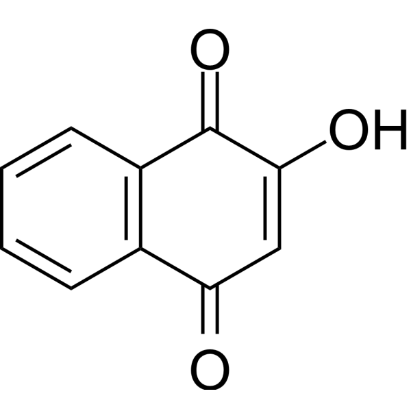 指甲花醌是一种在C-2位带有羟基的1,4-萘醌。它提取自指甲花(Lawsonia inermis)的叶片。它具有保护和抗真菌作用。它是萘-1,2,4-三酮的互变异构体。 据报道,凤仙花(Impatiens glandulifera)、小花凤仙花(Impatiens parviflora)和其他一些有相关数据的生物体中也存在2-羟基-1,4-萘醌。 |
