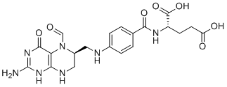 After rapid intravenous administration, serum total tetrahydrofolate (total-THF) concentrations reached a mean peak of 1722 ng/mL. Serum (6S)-5-methyl-5,6,7,8-tetrahydrofolate concentrations reached a mean peak of 275 ng/mL and the mean time to peak was 0.9 hours. Urinary. Data can't be found. Data can't be found. Duration of action: All routes: 3 to 6 hours. Onset of action: Oral: 20 to 30 minutes. Intramuscular: 10 to 20 minutes. Intravenous: Less than 5 minutes. Crosses blood-brain barrier in moderate amounts; largely concentrated in liver. Elimination: Renal: 80-90%. Fecal: 5-8%. For more Absorption, Distribution and Excretion (Complete) data for LEUCOVORIN (10 total), please visit the HSDB record page. Metabolism / Metabolites Extensively converted to tetrahydrofolic derivatives. In vivo, leucovorin calcium is rapidly and extensively converted to other tetrahydrofolic acid derivatives including 5-methyl tetrahydrofolate, which is the major transport and storage form of folate in the body. /Leucovorin calcium/ Hepatic and intestinal mucosal, mainly to 5-methyltetrahydrofolate (active). After oral administration, leucovorin is substantially (greater than 90%) and rapidly (within 30 minutes) metabolized. Metabolism is less extensive (about 66% after intravenous and 72% after intramuscular administration) and slower with parenteral administration. Biological Half-Life The mean terminal half-life for total-THF and (6S)-5-methyl-5,6,7,8-tetrahydrofolate was 5.1 and 6.8 hours, respectively. Terminal half-life for total reduced folates: 6.2 hours. |