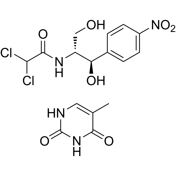 ClC(C(N[C@@H]([C@@H](C1C=CC([N+]([O-])=O)=CC=1)O)CO)=O)Cl.O=C1NC=C(C)C(=O)N1