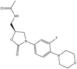 Antimicrobial Agents Linezolid, administered intravenously and orally, is indicated for the treatment of hospital-acquired pneumonia caused by methicillin-sensitive and methicillin-resistant Staphylococcus aureus or penicillin-sensitive Streptococcus pneumoniae. /Included on US Product Label/ Linezolid, administered intravenously and orally, is indicated for the treatment of vancomycin-resistant Enterococcus faecalis infections. /Included on US Product Label/ Oral linezolid is indicated for the treatment of uncomplicated skin and soft tissue infections caused by methicillin-sensitive Staphylococcus aureus or Streptococcus pyogenes. /Included on US Product Label/ For more complete data on the therapeutic uses of linezolids (16 in total), please visit the HSDB record page. Drug Warnings Myelosuppression (including anemia, leukopenia, pancytopenia, and thrombocytopenia) has been reported in patients treated with linezolid. In cases with known outcomes, affected hematological parameters returned to pre-treatment levels upon discontinuation of linezolid. Patients receiving linezolid treatment should have their complete blood count monitored weekly, especially those receiving linezolid treatment for more than two weeks, those with a history of bone marrow suppression, those taking medications that can cause bone marrow suppression, and those with chronic infections who have previously received or are currently receiving antibiotic treatment. Discontinuation of linezolid treatment should be considered for patients who develop or experience worsening bone marrow suppression. Lactic acidosis has been reported with Zyvox. In reported cases, patients experienced recurrent nausea and vomiting. Patients experiencing recurrent nausea or vomiting, unexplained acidosis, or low bicarbonate levels during Zyvox treatment should seek immediate medical attention. Serotonin syndrome has been reported when Zyvox is used in combination with serotonergic drugs, including antidepressants such as selective serotonin reuptake inhibitors (SSRIs). If clinical considerations suggest that Zyvox is appropriate for use in combination with serotonergic drugs, patients should be closely monitored for signs and symptoms of serotonin syndrome, such as cognitive impairment, high fever, hyperreflexia, and incoordination. If related signs or symptoms appear, the physician should consider discontinuing one or both medications. Peripheral neuropathy and optic neuropathy have been reported in patients treated with Zyvox, primarily in those treated for longer than the recommended maximum duration of 28 days. In cases where optic neuropathy progressed to vision loss, the treatment duration exceeded the recommended maximum duration. Blurred vision has also been reported in some patients treated with Zyvox for less than 28 days. If a patient develops symptoms of visual impairment, such as decreased vision, altered color vision, blurred vision, or visual field defects, an immediate ophthalmological examination is recommended. Visual function should be monitored in all patients taking Zyvox long-term (≥3 months) and in all patients developing new visual symptoms, regardless of the duration of Zyvox treatment. If peripheral neuropathy or optic neuropathy occurs, the potential risks of continuing Zyvox use in these patients should be weighed. For more complete data on linezolid (18 in total), please visit the HSDB records page. Pharmacodynamics Linezolid is an oxazolidinone antibacterial drug effective against most aerobic Gram-positive bacteria and mycobacteria. It has bacteriostatic activity against Staphylococcus and Enterococcus, and bactericidal activity against most Streptococcus isolates. Linezolid shows some activity against Gram-negative bacteria and anaerobes in vitro, but is ineffective against these microorganisms. Linezolid is a reversible, non-selective monoamine oxidase (MAO) inhibitor; therefore, co-administration with serotonergic drugs such as selective serotonin reuptake inhibitors (SSRIs) or tricyclic antidepressants (TCAs) may lead to serotonin syndrome. Linezolid should not be used to treat catheter-related bloodstream infections or catheter site infections, as the risks appear to outweigh the benefits in these cases. Linezolid is an oxazolidinone antibacterial drug whose mechanism of action is by inhibiting the initiation of bacterial protein synthesis. No cross-resistance has been found between linezolid and other protein synthesis inhibitors. Linezolid exhibits broad-spectrum antibacterial activity against Gram-positive bacteria, including methicillin-resistant Staphylococcus aureus (MRSA), penicillin-resistant Streptococcus pneumoniae (PRS), and vancomycin-resistant Enterococcus faecalis and Enterococcus faecium. Anaerobic bacteria such as Clostridium spp., Peptostreptococcus spp., and Prevotella spp. are also sensitive to linezolid. Linezolid has bacteriostatic activity against most susceptible bacteria, but exhibits bactericidal activity against certain strains of Streptococcus pneumoniae, Bacteroides fragilis, and Clostridium perfringens. In clinical trials for hospitalized patients with skin/soft tissue infections (primarily Staphylococcus aureus infections), intravenous/oral linezolid (up to 1250 mg daily) showed a clinical efficacy exceeding 83%. In patients with community-acquired pneumonia, the efficacy exceeded 94%. Preliminary clinical data also indicate that twice-daily intravenous/oral administration of 600 mg linezolid is comparable to intravenous administration of 1 g vancomycin in the treatment of hospital-acquired pneumonia and methicillin-resistant Staphylococcus aureus infections. In addition, linezolid 600 mg twice daily achieved a clinical/microbiological cure rate of over 85% for vancomycin-resistant enterococcal infections. Linezolid is generally well tolerated, with the most common adverse reaction being gastrointestinal disturbances. There have been no clinical reports of adverse reactio