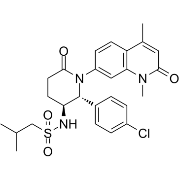 CC1=CC(=O)N(C2=C1C=CC(=C2)N3[C@@H]([C@H](CCC3=O)NS(=O)(=O)CC(C)C)C4=CC=C(C=C4)Cl)C