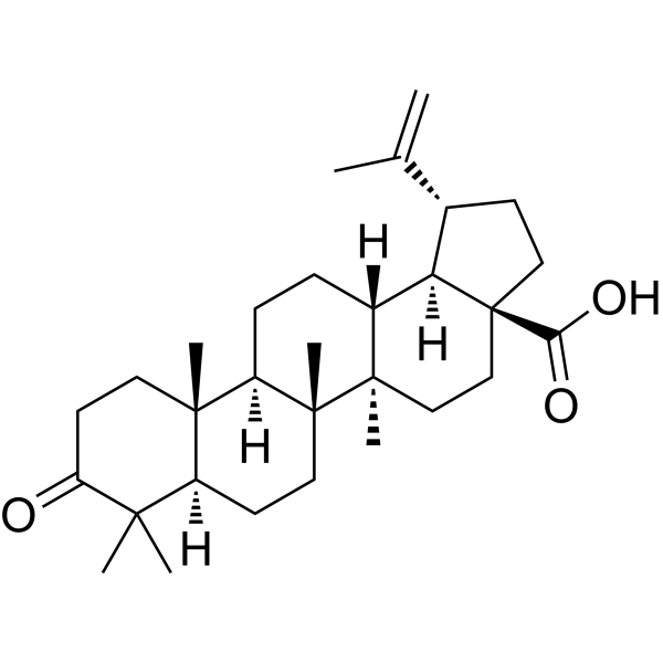 Betulonic Acid(72小时)的IC50为17.7、13.9、25.7、28.9和18.2,抑制多种人类肿瘤细胞系的生长,例如MGC-803、PC3、Bcap-37、A375和MCF-7 。 \M[2]。 10 μM 的 IC50 与桦木酸的抗疟原虫活性相关[3]。桦木酮酸的 EC50 值分别为 0.9、73.32 和 5.7 µM,能够抑制 HSV-1、ECHO6 和流感 FPV 病毒[4]。
