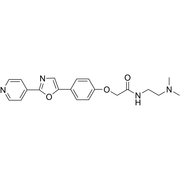 口服配方 1: 悬浮于0.5% CMC Na (羧甲基纤维素钠) 口服配方 2: 悬浮于0.5% Carboxymethyl cellulose (羧甲基纤维素) 示例: 以口服配方 1 (悬浮于 0.5% CMC Na)为例说明, 如果要配制 100 mL 2.5 mg/mL 的工作液, 您可以先取0.5g CMC Na并将其溶解于100mL ddH2O中,得到0.5%CMC-Na澄清溶液;然后将250 mg待测化合物加到100 mL前述 0.5%CMC Na溶液中,得到悬浮液。 View More