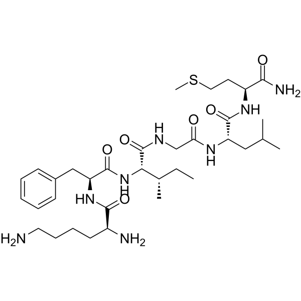 Eledoisin 相关肽已被证明在外周(唾液腺和肠道)和中枢神经系统 (CNS) 中具有 P 物质 (SP) 样活性。它们还与 SP 共享共同的 N 端氨基酸序列。在相同的射血电流下,Eledoisin相关肽似乎与该核中神经元的单细胞活性几乎相同[2]。呼吸神经元和反射性中间神经元受到谷氨酸、P 物质及其类似物卡尼丁相关肽的兴奋作用[3]。