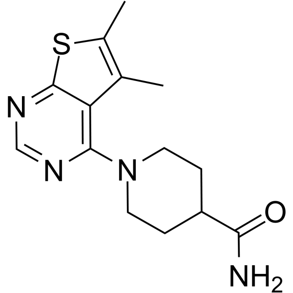 InChI=1S/C14H18N4OS/c1-8-9(2)20-14-11(8)13(16-7-17-14)18-5-3-10(4-6-18)12(15)19/h7,10H,3-6H2,1-2H3,(H2,15,19)