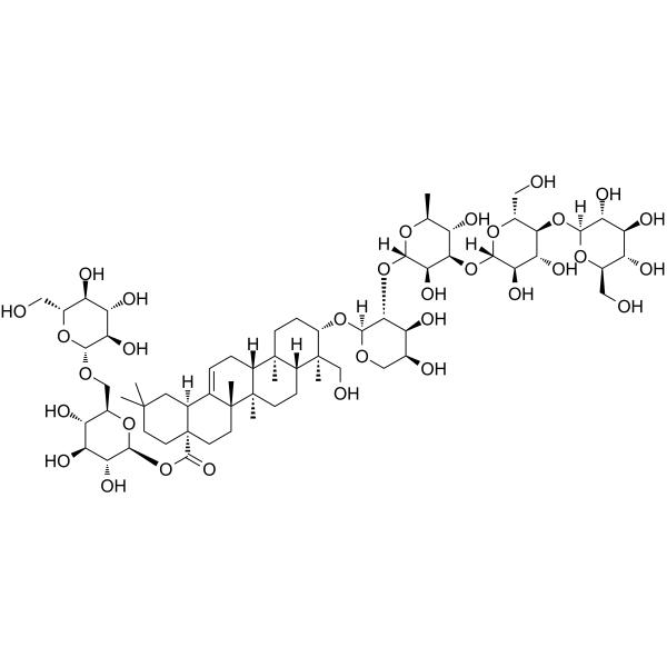 C[C@H]1[C@@H]([C@H]([C@H]([C@@H](O1)O[C@@H]2[C@H]([C@H](CO[C@H]2O[C@H]3CC[C@]4([C@H]([C@]3(C)CO)CC[C@@]5([C@@H]4CC=C6[C@]5(CC[C@@]7([C@H]6CC(CC7)(C)C)C(=O)O[C@H]8[C@@H]([C@H]([C@@H]([C@H](O8)CO[C@H]9[C@@H]([C@H]([C@@H]([C@H](O9)CO)O)O)O)O)O)O)C)C)C)O)O)O)O[C@H]1[C@@H]([C@H]([C@@H]([C@H](O1)CO)O[C@H]1[C@@H]([C@H]([C@@H]([C@H](O1)CO)O)O)O)O)O)O