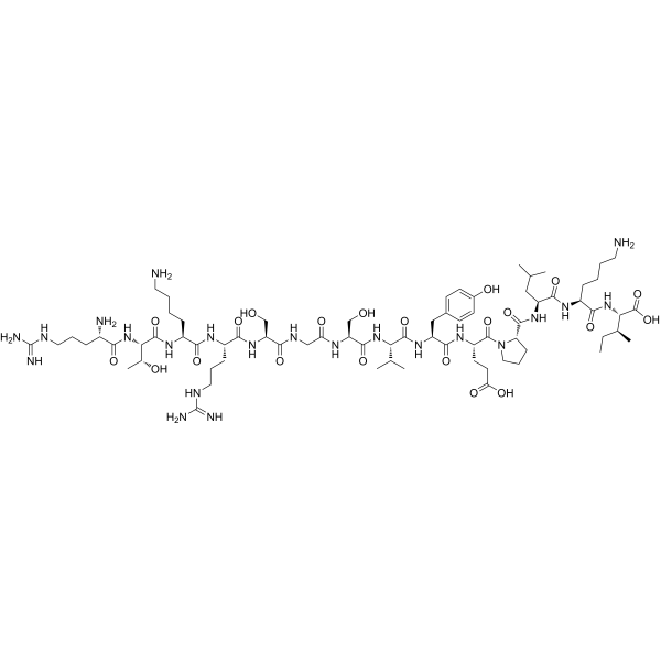 InChI=1S/C72H124N22O21/c1-8-39(6)56(70(114)115)92-62(106)45(18-10-12-28-74)85-63(107)48(32-37(2)3)88-66(110)52-20-15-31-94(52)69(113)47(25-26-54(100)101)87-64(108)49(33-41-21-23-42(98)24-22-41)89-67(111)55(38(4)5)91-65(109)51(36-96)83-53(99)34-82-59(103)50(35-95)90-61(105)46(19-14-30-81-72(78)79)84-60(104)44(17-9-11-27-73)86-68(112)57(40(7)97)93-58(102)43(75)16-13-29-80-71(76)77/h21-24,37-40,43-52,55-57,95-98H,8-20,25-36,73-75H2,1-7H3,(H,82,103)(H,83,99)(H,84,104)(H,85,107)(H,86,112)(H,87,108)(H,88,110)(H,89,111)(H,90,105)(H,91,109)(H,92,106)(H,93,102)(H,100,101)(H,114,115)(H4,76,77,80)(H4,78,79,81)/t39-,40+,43-,44-,45-,46-,47-,48-,49-,50-,51-,52-,55-,56-,57-/m0/s1