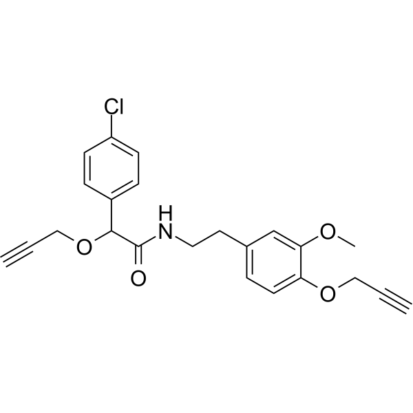 2-(4-Chlorophenyl)-N-{2-[3-methoxy-4-(prop-2-yn-1-oxy)phenyl]ethyl}-2-(prop-2-yn-1-oxy)acetamide is a monocarboxylic acid amide formed by the condensation of the carboxyl group of p-chloromandelic acid propargyl ether with the amino group of 2-[3-methoxy-4-(prop-2-yn-1-oxy)phenyl]ethylamine. It is a monocarboxylic acid amide, a terminal alkyne compound, an aromatic ether, and also a monochlorobenzene compound.