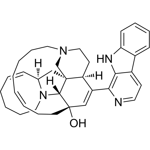 InChI=1S/C36H44N4O/c41-36-18-10-4-1-2-5-11-20-39-22-17-30(35(25-39)23-26-13-7-3-6-12-21-40(26)34(35)36)29(24-36)32-33-28(16-19-37-32)27-14-8-9-15-31(27)38-33/h1,4,7-9,13-16,19,24,26,30,34,38,41H,2-3,5-6,10-12,17-18,20-23,25H2/b4-1-,13-7-/t26-,30-,34+,35-,36-/m0/s1