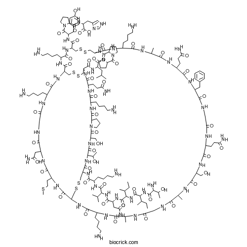 NCCCCC1NC(=O)CNC(=O)C(CC(=O)N)NC(=O)C(CCSC)NC(=O)C2NC(C(NC(C(NC(CNC(C(NC(C(NC(C(NC(CNC(C(NC(C(NC(C(NC(C(NC(=O)C3NC(C4CCCN4C(C4CCCN4C(C(NC(C(NC(C(NC(C(NC(C4CCCN4C(C(NC(C(NC(C(NC(C(NC(C(NC(C(NC(C(NC(C(C(CC)C)NC(C(C(O)C)N)=O)=O)C(CC)C)=O)CC(=O)N)=O)C(C)C)=O)CCCCN)=O)CSSC2)=O)C(O)C)=O)CO)=O)=O)CCCCN)=O)CCC(=O)N)=O)CSSCC(C(NC(C(NC(C(NC(C(N2CCCC2C(NC(CC2=CN=CN2)C(=O)O)=O)=O)CC2=CC=C(O)C=C2)=O)CSSC3)=O)CCCCN)=O)NC1=O)=O)CC(C)C)=O)=O)=O)CCCCN)=O)C)=O)CCC(=O)N)=O)CC1=CC=CC=C1)=O)=O)CCC(=O)N)=O)CO)=O)C)=O)=O)C)=O)CCCCN)=O