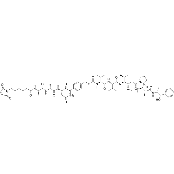 [4-[[(2S)-4-amino-2-[[(2S)-2-[[(2S)-2-[6-(2,5-dioxopyrrol-1-yl)hexanoylamino]propanoyl]amino]propanoyl]amino]-4-oxobutanoyl]amino]phenyl]methyl N-[(2S)-1-[[(2S)-1-[[(3R,4S,5S)-1-[(2S)-2-[(1R,2R)-3-[[(1S,2R)-1-hydroxy-1-phenylpropan-2-yl]amino]-1-methoxy-2-methyl-3-oxopropyl]pyrrolidin-1-yl]-3-methoxy-5-methyl-1-oxoheptan-4-yl]-methylamino]-3-methyl-1-oxobutan-2-yl]amino]-3-methyl-1-oxobutan-2-yl]-N-methylcarbamate