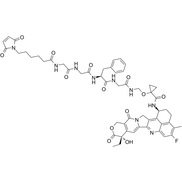 CC[C@@]1(C2=C(COC1=O)C(=O)N3CC4=C5[C@H](CCC6=C5C(=CC(=C6C)F)N=C4C3=C2)NC(=O)C7(CC7)OCNC(=O)CNC(=O)[C@H](CC8=CC=CC=C8)NC(=O)CNC(=O)CNC(=O)CCCCCN9C(=O)C=CC9=O)O