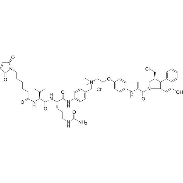[4-[[(2S)-5-(carbamoylamino)-2-[[(2S)-2-[6-(2,5-dioxopyrrol-1-yl)hexanoylamino]-3-methylbutanoyl]amino]pentanoyl]amino]phenyl]methyl-[2-[[2-[(1S)-1-(chloromethyl)-5-hydroxy-1,2-dihydrobenzo[e]indole-3-carbonyl]-1H-indol-5-yl]oxy]ethyl]-dimethylazanium;chloride