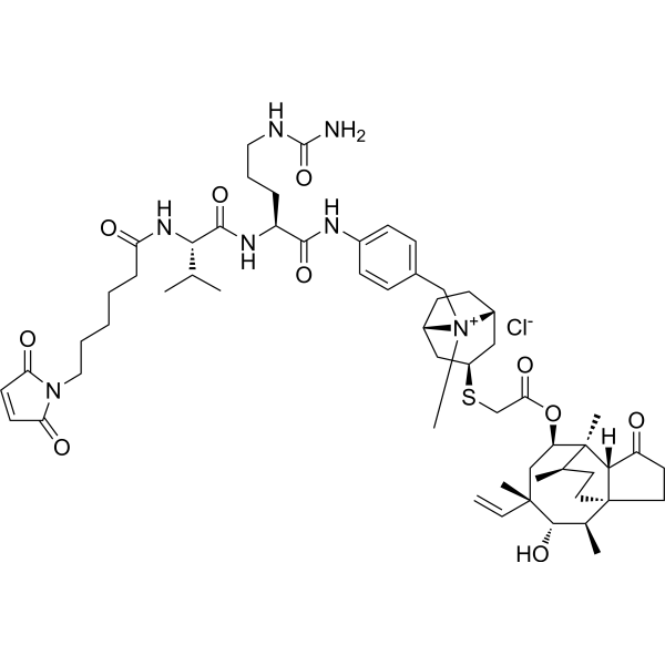[(1S,2R,3S,4S,6R,7R,8R,14R)-4-ethenyl-3-hydroxy-2,4,7,14-tetramethyl-9-oxo-6-tricyclo[5.4.3.01,8]tetradecanyl] 2-[[(1S,5R)-8-[[4-[[(2S)-5-(carbamoylamino)-2-[[(2S)-2-[6-(2,5-dioxopyrrol-1-yl)hexanoylamino]-3-methylbutanoyl]amino]pentanoyl]amino]phenyl]methyl]-8-methyl-8-azoniabicyclo[3.2.1]octan-3-yl]sulfanyl]acetate;chloride
