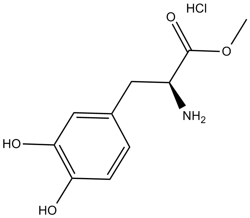 ST-41769; ST 41769; (S)-Methyl 2-amino-3-(3,4-dihydroxyphenyl)propanoate hydrochloride; L-3,4-Dihydroxyphenylalanine methyl ester hydrochloride; Melevodopa hydrochloride; L-Dopa methyl ester hydrochloride; levodopa methyl ester hydrochloride; Methyl L-DOPA hydrochloride; L-Tyrosine, 3-hydroxy-, methyl ester, hydrochloride (1:1); Melevodopa hydrochloride