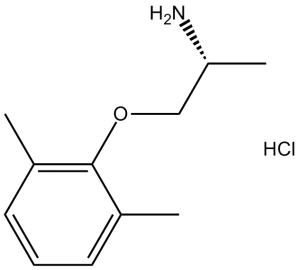 体外活性:美西律是一种局部麻醉剂、抗心律失常药(Ib 类),结构与利多卡因相似,但具有口服活性。美西律抑制脉冲启动和传导所需的内向钠电流,从而降低动作电位的上升速率。它通过抑制钠通道来降低钠电流。美西律可降低心脏浦肯野纤维的有效不应期 (ERP)。 ERP 的降低幅度小于动作电位持续时间 (APD) 的降低,这导致 ERP/APD 比率增加。它不会显着影响静息膜电位或窦房结自律性、左心室功能、收缩动脉血压、房室 (AV) 传导速度或 QRS 或 QT 间期
