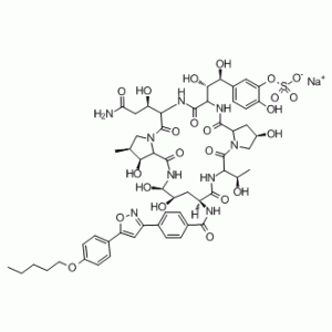 sodium 5-((1S,2S)-2-((2R,6S,9S,11R,12R,14aS,15S,16S,20S,23S,25aS)-20-((R)-3-amino-1-hydroxy-3-oxopropyl)-2,11,12,15-tetrahydroxy-6-((R)-1-hydroxyethyl)-16-methyl-5,8,14,19,22,25-hexaoxo-9-(4-(5-(4-(pentyloxy)phenyl)isoxazol-3-yl)benzamido)tetracosahydro-1H-dipyrrolo[2,1-c:2',1'-l][1,4,7,10,13,16]hexaazacyclohenicosin-23-yl)-1,2-dihydroxyethyl)-2-hydroxyphenyl sulfate