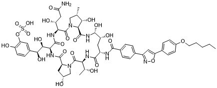 O=C([C@](NC(C(NC([C@@](C[C@@H](O)C1)([H])N1C2=O)=O)[C@H](O)[C@H](C3=CC(OS(=O)(O)=O)=C(O)C=C3)O)=O)([H])[C@H](O)CC(N)=O)N4[C@@](C(N[C@@H]([C@@H](C[C@@H](C(NC2[C@H](O)C)=O)NC(C5=CC=C(C6=NOC(C7=CC=C(OCCCCC)C=C7)=C6)C=C5)=O)O)O)=O)([H])[C@@H](O)[C@@H](C)C4