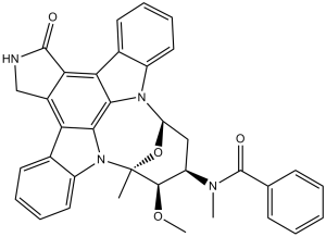 C[C@@]12[C@@H]([C@@H](C[C@@H](O1)N3C4=CC=CC=C4C5=C6C(=C7C8=CC=CC=C8N2C7=C53)CNC6=O)N(C)C(=O)C9=CC=CC=C9)OC