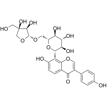 野葛根素是一种黄酮C-糖苷,由7,4'-二羟基黄酮通过C-糖苷键在8位被6-O-[(2R,3R,4R)-3,4-二羟基-4-(羟甲基)氧杂环戊烷-2-基]-β-D-吡喃葡萄糖残基取代而成。它是一种植物代谢产物。它既是二羟基黄酮,也是黄酮C-糖苷。