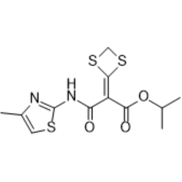 InChI=1S/C12H14N2O3S3/c1-6(2)17-10(16)8(11-19-5-20-11)9(15)14-12-13-7(3)4-18-12/h4,6H,5H2,1-3H3,(H,13,14,15)
