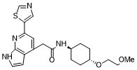 InChI=1S/C21H26N4O3S/c1-27-8-9-28-16-4-2-15(3-5-16)24-20(26)11-14-10-18(19-12-22-13-29-19)25-21-17(14)6-7-23-21/h6-7,10,12-13,15-16H,2-5,8-9,11H2,1H3,(H,23,25)(H,24,26)/t15-,16-