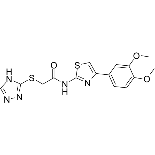 InChI=1S/C15H15N5O3S2/c1-22-11-4-3-9(5-12(11)23-2)10-6-24-15(18-10)19-13(21)7-25-14-16-8-17-20-14/h3-6,8H,7H2,1-2H3,(H,16,17,20)(H,18,19,21)