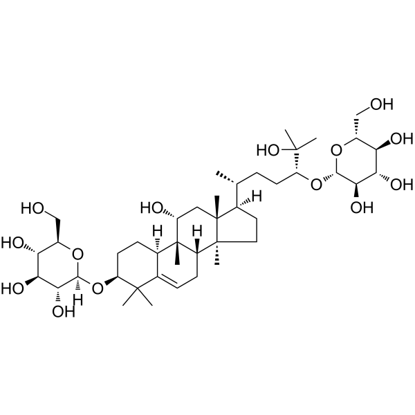 C[C@H](CC[C@H](C(C)(C)O)O[C@H]1[C@@H]([C@H]([C@@H]([C@H](O1)CO)O)O)O)[C@H]2CC[C@@]3([C@@]2(C[C@H]([C@@]4([C@H]3CC=C5[C@H]4CC[C@@H](C5(C)C)O[C@H]6[C@@H]([C@H]([C@@H]([C@H](O6)CO)O)O)O)C)O)C)C