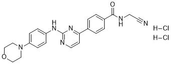 InChI=1S/C23H22N6O2.2ClH/c24-10-12-25-22(30)18-3-1-17(2-4-18)21-9-11-26-23(28-21)27-19-5-7-20(8-6-19)29-13-15-31-16-14-29/h1-9,11H,12-16H2,(H,25,30)(H,26,27,28)2*1H
