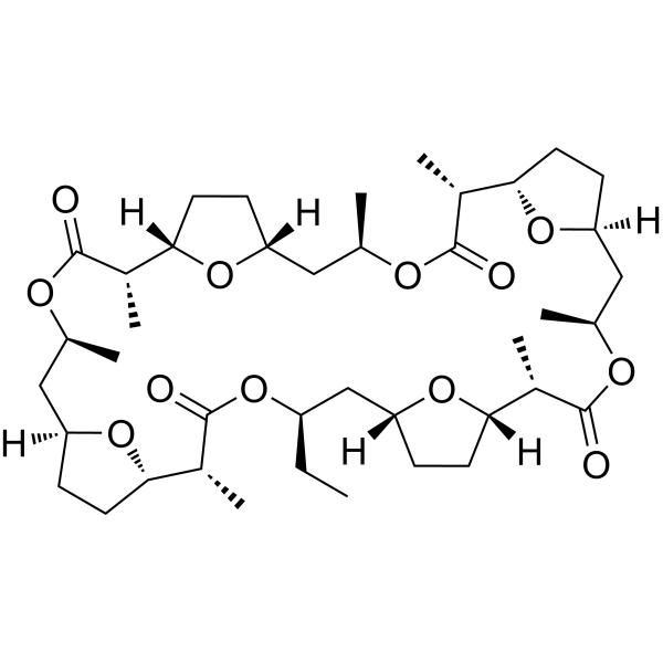 InChI=1S/C41H66O12/c1-9-29-21-33-13-17-36(52-33)27(7)40(44)48-23(3)19-31-11-15-34(50-31)25(5)38(42)46-22(2)18-30-10-14-35(49-30)26(6)39(43)47-24(4)20-32-12-16-37(51-32)28(8)41(45)53-29/h22-37H,9-21H2,1-8H3/t22-,23+,24+,25-,26+,27+,28-,29-,30-,31+,32+,33-,34-,35+,36+,37-/m1/s1