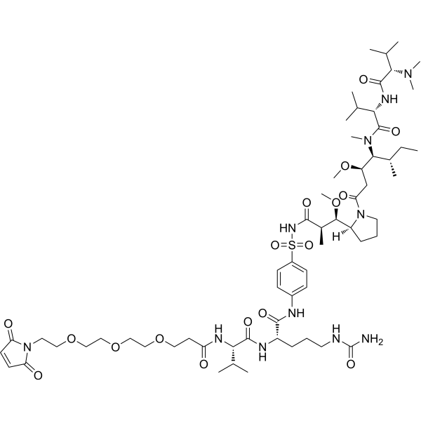 InChI=1S/C61H101N11O17S/c1-15-40(8)54(70(12)60(81)52(38(4)5)67-59(80)53(39(6)7)69(10)11)46(85-13)36-50(76)71-28-17-19-45(71)55(86-14)41(9)56(77)68-90(83,84)43-22-20-42(21-23-43)64-57(78)44(18-16-27-63-61(62)82)65-58(79)51(37(2)3)66-47(73)26-30-87-32-34-89-35-33-88-31-29-72-48(74)24-25-49(72)75/h20-25,37-41,44-46,51-55H,15-19,26-36H2,1-14H3,(H,64,78)(H,65,79)(H,66,73)(H,67,80)(H,68,77)(H3,62,63,82)/t40-,41+,44-,45-,46+,51-,52-,53-,54-,55+/m0/s1