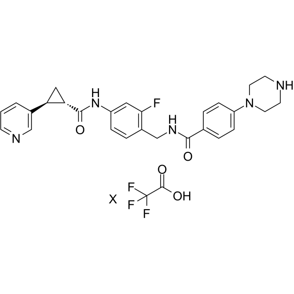 C(F)(F)(F)C(=O)O.C([C@H]1C[C@@H]1C1=CN=CC=C1)(=O)NC1C=CC(CNC(C2C=CC(N3CCNCC3)=CC=2)=O)=C(F)C=1