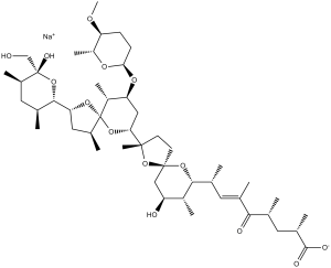 C[C@H]1[C@@]2(O[C@]([C@@]3([H])O[C@](O)([C@H](C)C[C@@H]3C)CO)([H])C[C@@H]2C)O[C@]([C@]4(O[C@]5(O[C@]([C@H](C)[C@@H](O)C5)([H])[C@@H](C)/C=C(C)/C([C@H](C)C[C@H](C)C([O-])=O)=O)CC4)C)([H])C[C@@H]1O[C@@]6([H])O[C@@H]([C@@H](OC)CC6)C.[Na+]