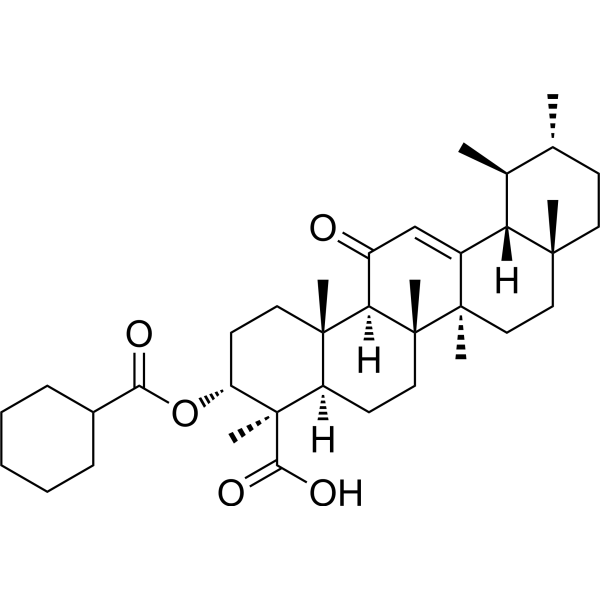 体外活性:ND-630(也称为 GS-0976;NDI-010976;firsocostat)是 ACC(乙酰辅酶A羧化酶)的有效抑制剂。作为一种有效的变构蛋白-蛋白相互作用抑制剂,ND-630 在 ACC 磷酸肽受体和二聚化位点内相互作用,以防止二聚化并抑制两种 ACC 同工酶的酶活性,减少培养细胞和动物中的脂肪酸合成并刺激脂肪酸氧化,并表现出良好的药物样特性。 ND-630 抑制 hACC1 (IC50=2.1±0.2 nM) 和 hACC2 (IC50=6.1±0.8 nM)。抑制是可逆的,并且对 ACC 具有高度特异性。 ND-630 通过在磷酸肽受体和酶的二聚位点内相互作用以防止二聚化来抑制 ACC 活性。 ND-630 在 HepG2 细胞中抑制脂肪酸合成,EC50 为 66 nM,而不改变细胞总数、细胞蛋白浓度以及乙酸盐与胆固醇的结合。激酶测定:ND-630 抑制人 ACC1 和 ACC2,IC50 值分别为 2.1 和 6.1 nM。细胞测定:ND-630 在 ACC 磷酸肽受体和二聚化位点内相互作用,防止二聚化并抑制两种 ACC 同工酶的酶活性,减少培养细胞和动物中的脂肪酸合成并刺激脂肪酸氧化,并表现出良好的药物样作用特性。
