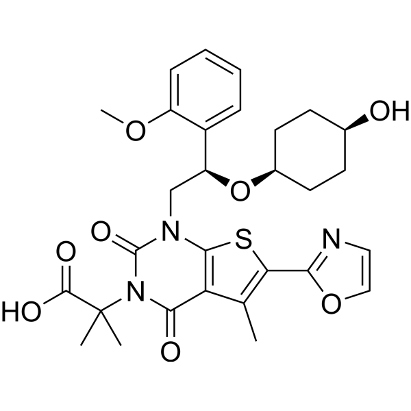 2-[1-[(2S)-2-(2-methoxyphenyl)-2-(oxan-4-yloxy)ethyl]-5-methyl-6-(1,3-oxazol-2-yl)-2,4-dioxothieno[2,3-d]pyrimidin-3-yl]-2-methylpropanoic acid