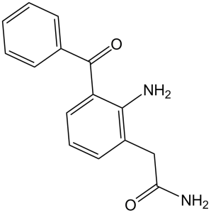Nepafenac (AHR9434; AL6515; Nevanac) is a prodrug that is metabolized in vivo to Amfenac (its active form), a non-selective cyclooxygenase (COX) inhibitor targeting both COX-1 and COX-2. In in vitro enzyme assays, Amfenac (the active metabolite of Nepafenac) exhibited inhibitory activity against human recombinant COX-1 with an IC₅₀ of 0.17 μM and human recombinant COX-2 with an IC₅₀ of 0.26 μM [1] |