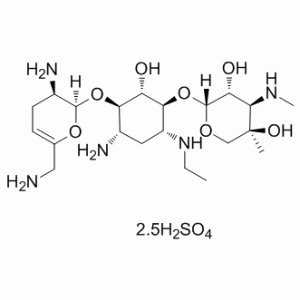 奈替米星是半合成的西索米星1-N-乙基衍生物,西索米星是一种氨基糖苷类抗生素,其作用类似于庆大霉素,但对耳朵和肾脏的毒性较小。奈替米星通过与细菌30S核糖体亚基结合,干扰mRNA结合和受体tRNA位点,从而抑制易感生物的蛋白质合成。奈替米星的杀菌作用机制尚未完全阐明。 奈替米星是一种氨基糖苷类抗菌药物。 奈替米星是一种半合成的水溶性氨基糖苷类抗生素,来源于西索米星,西索米星是一种天然存在的抗生素,由伊尼奥小单孢菌(Micromonospora inyoensis)发酵产生。奈替米星与细菌30S核糖体亚基的16S rRNA和S12蛋白不可逆地结合。因此,该药物会干扰mRNA与细菌核糖体之间起始复合物的组装,从而抑制蛋白质合成的起始。此外,奈替米星还会诱导mRNA模板错读并导致翻译移码,从而导致翻译提前终止。这最终会导致细菌细胞死亡。 硫酸奈替米星是奈替米星的硫酸盐形式,奈替米星是一种半合成的水溶性氨基糖苷类抗生素。奈替米星来源于西索米星,西索米星是一种天然存在的氨基糖苷类抗生素,由伊尼奥微单孢菌(Micromonospora inyoensis)发酵产生。奈替米星与细菌30S核糖体亚基的16S rRNA和S12蛋白不可逆地结合。因此,该药物会干扰mRNA与细菌核糖体之间起始复合物的组装,从而抑制蛋白质合成的起始。此外,奈替米星可诱导mRNA模板错读,导致翻译移码,从而造成翻译提前终止。这最终会导致细菌细胞死亡。 奈替米星是半合成的1-N-乙基西索霉素衍生物,西索霉素是一种氨基糖苷类抗生素,其作用与庆大霉素相似,但对耳朵和肾脏的毒性较小。 适应症 用于治疗由敏感菌株引起的菌血症、败血症、呼吸道感染、皮肤和软组织感染、烧伤、创伤和围手术期感染。 作用机制 像奈替米星这样的氨基糖苷类抗生素“不可逆地”与特定的30S亚基蛋白和16S rRNA结合。具体而言,奈替米星与16S rRNA的四个核苷酸和S12蛋白的一个氨基酸结合。这会干扰30S亚基16S rRNA中第1400个核苷酸附近的解码位点。该区域与tRNA反密码子中的摆动碱基相互作用。这会导致起始复合物的干扰,mRNA的错读,从而将错误的氨基酸插入多肽链,产生无功能或有毒的肽段,并导致多核糖体解离成无功能的单体核糖体,使细菌无法合成对其生长至关重要的蛋白质。 氨基糖苷类药物通常对细菌有效。尽管其确切的作用机制尚未完全阐明,但这些药物似乎是通过与30S核糖体亚基不可逆结合来抑制易感细菌的蛋白质合成。/氨基糖苷类/ /氨基糖苷类/抑制蛋白质生物合成并降低遗传密码翻译的保真度。 /氨基糖苷类/ 治疗用途 庆大霉素类 奈替米星适用于治疗由敏感菌引起的胆道感染。/已包含在美国产品标签中/ 奈替米星适用于治疗由敏感菌引起的骨骼和关节感染。/已包含在美国产品标签中/ 奈替米星适用于治疗由敏感菌引起的中枢神经系统感染。/已包含在美国产品标签中/ 有关奈替米星(共13种)的更多完整治疗用途数据,请访问HSDB记录页面。 药物警告 据报道,接受链霉素治疗的婴幼儿,如果剂量超过最大推荐剂量,可能会出现中枢神经系统抑制,表现为昏迷、肌张力减退、昏睡或深度呼吸抑制。然而,所有氨基糖苷类药物都具有引起神经肌肉阻滞的潜在风险。/氨基糖苷类/ 由于早产儿和新生儿肾功能尚未发育成熟,可能导致药物消除半衰期延长和氨基糖苷类药物引起的毒性,因此应谨慎用于早产儿和新生儿,包括奈替米星在内的氨基糖苷类药物。儿科患者可能需要调整剂量。 由于氨基糖苷类药物具有毒性,老年患者应谨慎使用,仅在考虑过毒性较小的替代药物和/或发现无效后方可使用。老年患者更容易出现与年龄相关的肾功能下降。不应超过推荐剂量,并在治疗期间密切监测患者的肾功能。老年患者可能需要根据其年龄增长、肾功能下降以及体重减轻的情况,减少氨基糖苷类药物的每日剂量。此外,即使肾功能正常的患者也可能发生听力丧失。 /氨基糖苷类/ 局部冲洗和手术期间局部应用氨基糖苷类药物后,可能发生神经肌肉阻滞、呼吸麻痹、耳毒性和肾毒性。/氨基糖苷类/ 有关奈替米星(共17条)的更多药物警告(完整)数据,请访问HSDB记录页面。 药效学 奈替米星是一种半合成的水溶性氨基糖苷类抗生素,由放线菌属的伊尼奥微单孢菌发酵产生。氨基糖苷类主要用于治疗需氧革兰氏阴性菌感染,例如假单胞菌属、不动杆菌属和肠杆菌属。低浓度奈替米星对多种致病菌具有活性,包括大肠杆菌、克雷伯氏菌-肠杆菌-沙雷氏菌群、柠檬酸杆菌属、变形杆菌属(吲哚阳性和吲哚阴性),包括奇异变形杆菌、摩根氏假单胞菌、雷氏假单胞菌、普通变形杆菌、铜绿假单胞菌和淋病奈瑟菌。奈替米星体外对流感嗜血杆菌、沙门氏菌属和志贺氏菌属的分离株也具有活性。对产青霉素酶和不产青霉素酶的葡萄球菌(包括耐甲氧西林菌株)均有效。部分普罗维登斯菌属、不动杆菌属和气单胞菌属菌株也对奈替米星敏感。许多上述菌株对其他氨基糖苷类抗生素(如卡那霉素、庆大霉素、妥布霉素和西索米星)耐药,但在体外对奈替米星敏感。偶尔也会发现对阿米卡星耐药但对奈替米星敏感的菌株。奈替米星与青霉素G联用对大多数粪链球菌(肠球菌)菌株具有协同杀菌作用。奈替米星与羧苄青霉素或替卡西林联合用药对许多铜绿假单胞菌菌株具有协同作用。此外,奈替米星与羧苄青霉素、阿洛西林、美洛西林、头孢孟多、头孢噻肟