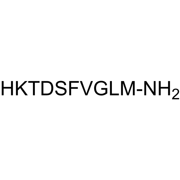 注射用配方1: DMSO : Tween 80: Saline = 10 : 5 : 85 (如: 100 μL DMSO → 50 μL Tween 80 → 850 μL Saline)(IP/IV/IM/SC等) *生理盐水/Saline的制备:将0.9g氯化钠/NaCl溶解在100 mL ddH ₂ O中,得到澄清溶液。 注射用配方 2: DMSO : PEG300 :Tween 80 : Saline = 10 : 40 : 5 : 45 (如: 100 μL DMSO → 400 μL PEG300 → 50 μL Tween 80 → 450 μL Saline) 注射用配方 3: DMSO : Corn oil = 10 : 90 (如: 100 μL DMSO → 900 μL Corn oil) 示例: 以注射用配方 3 (DMSO : Corn oil = 10 : 90) 为例说明, 如果要配制 1 mL 2.5 mg/mL的工作液, 您可以取 100 μL 25 mg/mL 澄清的 DMSO 储备液,加到 900 μL Corn oil/玉米油中, 混合均匀。 View More