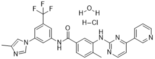 Nilotinib;641571-10-0;Nilotinib hydrochloride;923288-95-3; Nilotinib monohydrochloride monohydrate;923288-90-8;Nilotinib-d6;1268356-17-7;Nilotinib-d3;1215678-43-5;Nilotinib hydrochloride;923288-95-3; 641571-10-0; 923289-71-8 (hydrochloride dihydrate); 1277165-20-4 (dihydrochloride dihydrate)