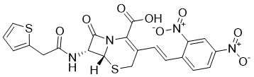 C1C(=C(N2[C@H](S1)[C@@H](C2=O)NC(=O)CC3=CC=CS3)C(=O)O)/C=C/C4=C(C=C(C=C4)[N+](=O)[O-])[N+](=O)[O-]
